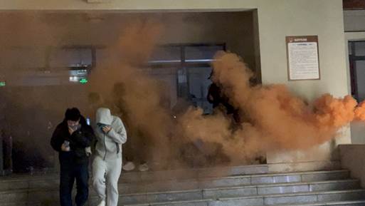 21时30分,学生公寓GC3突发火情,消防控制室消防主机联动发出报警,公寓值班员迅速查看现场,确认火情后立即拨打校园报警电话86057110,同时一键开启楼宇各应急疏散门,播报紧急疏散广播。学校应急指挥中心接到报警后立即启动灭火与应急疏散预案,各行动组立即按照分工进行处置。警戒组迅速疏通消防通道、封锁相关道路,进行现场警戒;学生公寓管理人员、相关学院辅导员组成疏散引导组,有序组织学生疏散至安全地点。