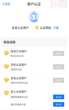 点击用户认证,将四项人脸认证完成,点击左上角返回,返回首页