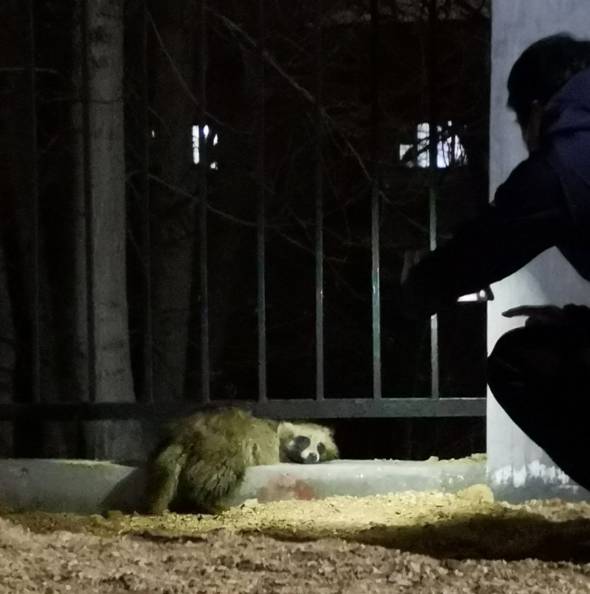 3月12日晚9时左右,我校幼儿园园长张建英老师和离退休处李梅月教授在笔架山环山北路散步,夜色中一只野生动物从山上下来横穿马路,欲窜往校外野地,不巧被卡在了校园围栏下方的间隙中,两位老师见状后走近观察,发现小动物情急之下越卡越紧,赶紧拨打“校园110”24小时报警求助电话,安全管理处值班员立即安排保安队员携带工具前往营救,此时机电学院胡效东教授一家三口也刚好路过,随即也加入了营救行动。