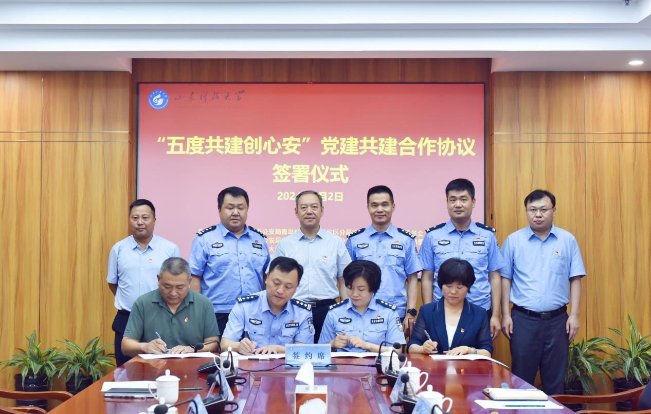 7月2日下午,“五度共建创心安”党建共建签署仪式在taptap点点体育举行,校党委副书记刘明永出席了签约仪式,保卫部(安全管理处)党支部、青岛市公安局开发区分局辛安派出所党总支、青岛市公安局开发区分局人口管理服务大队党支部、辛安街道办事处渭河西路社区党委进行了现场签约。