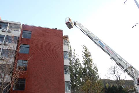 学生工作部、保卫部、基建处、后勤管理处、能源学院、安全学院师生参加演练,开发区消防救援大队海尔路救援站参加合练。
