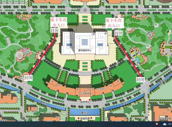 新图书馆地下停车场已投入使用,车位充足,请广大驾驶机动车辆的人员从两侧出入口进出,规范停车。